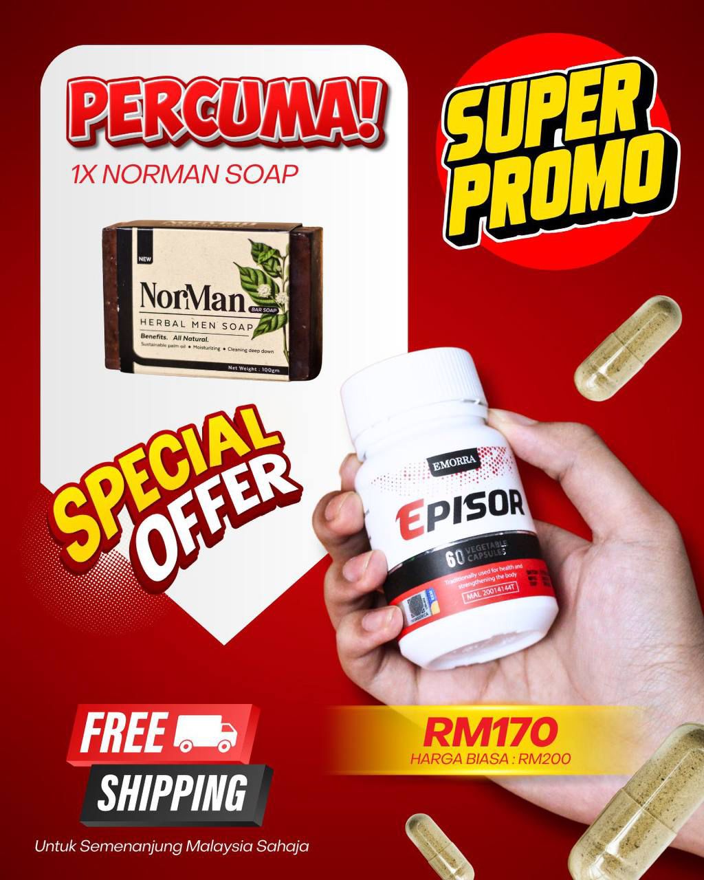Harga sebenar ialah RM180. TETAPI promosi kini EPISOR berharga hanya RM150 siap FREE GIFT untuk anda.Β
